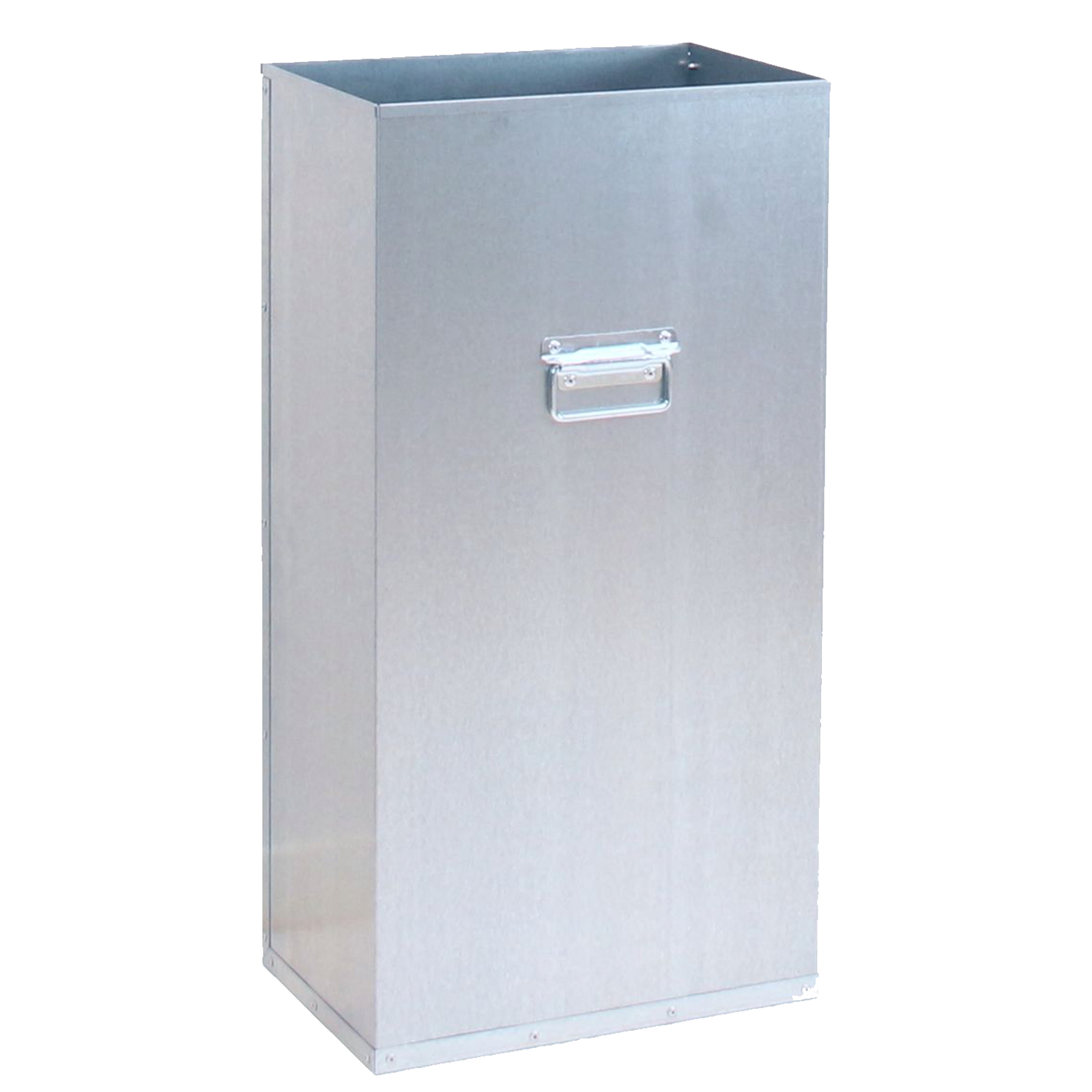 Denne beholder er udført i aluminium og udstyret med håndtag på siderne for nem håndtering.