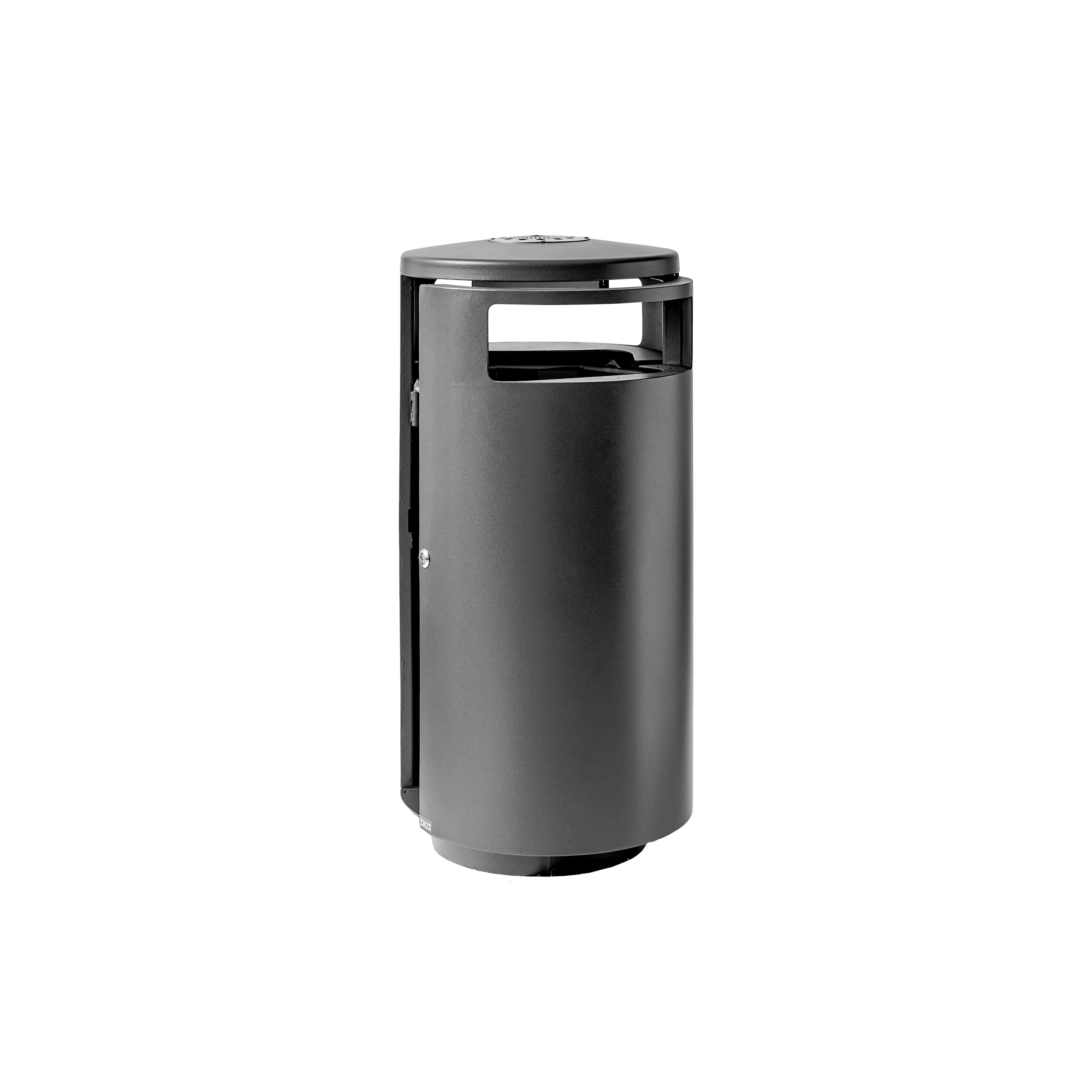 Praktisk affaldsbeholder fra Bica sikrer nem og brugervenlig affaldssortering udendørs. Affaldsbeholderen har et cylinderformet design og med indkast fra begge sider. Toppen fungerer som askebæger, så rygeren har mulighed for at skodde cigaretten. Affaldsbeholderen leveres med integreret poseholder, som kan trækkes ud, når posen skal skiftes. Affaldsbeholderen har dertil frontdør for nem tømning, der åbnes med nøgle. Bica Model 5075 kan med fordel opstilles på alle udendørs arealer, opholdsområder og ved indgangspartier.