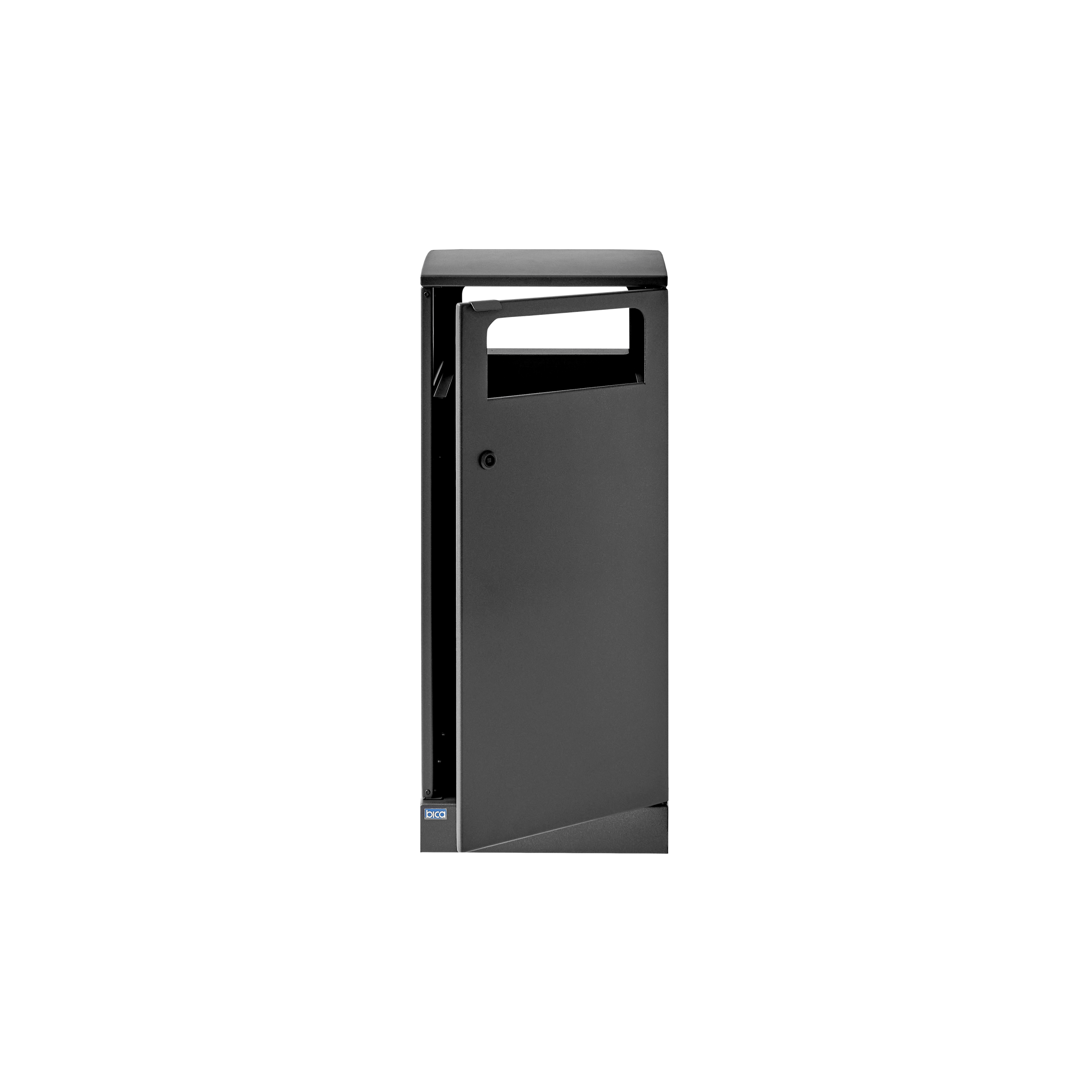Fleksibel affaldsbeholder fra Bica sikrer nem og brugervenlig affaldssortering udendørs. Affaldsbeholderen er designet med indkast fra begge sider, hvor der kan monteres en metalklap, så fugle ikke går i affaldet. Affaldsbeholderen leveres med integreret poseholder, som kan trækkes ud, når posen skal skiftes. Affaldsbeholderen har dertil frontdør for nem tømning, der åbnes med nøgle. Bica Model 5081 kan kombineres med andre Bica modeller i samme dybde.