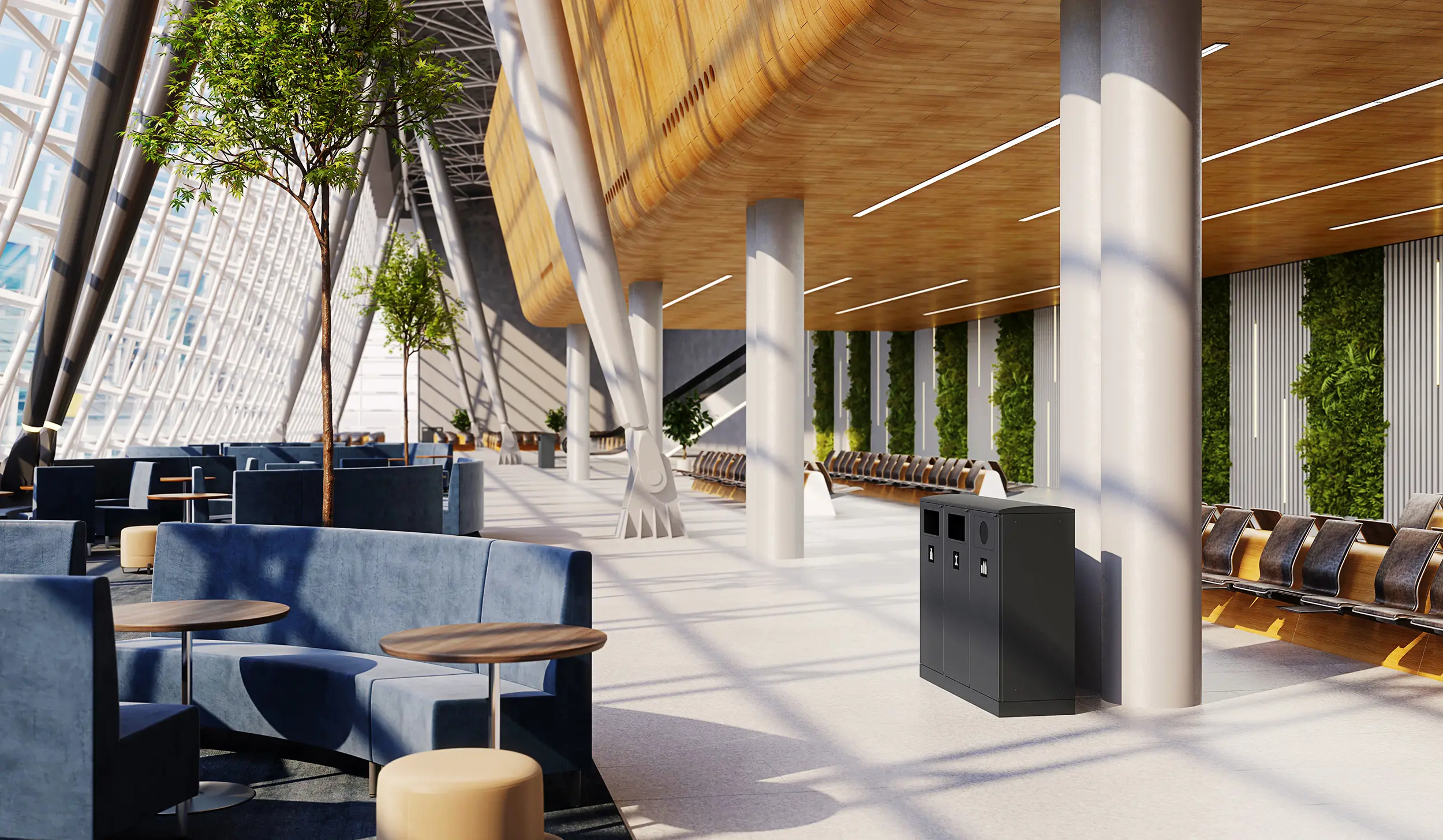 Stilren og ergonomisk affaldsbeholder fra Bica sikrer nem og brugervenlig affaldssortering indendørs. Affaldsbeholderen er designet med et rundt indkast, hvor en kraftig gummimåtte sikre enkelt indkast af flasker og dåser. Indkastet kan udskiftes til et helt åbent indkast. Affaldsbeholderen er udstyret med poseholder med vippefunktion og frontdør for ergonomisk korrekt tømning uden tunge løft.
