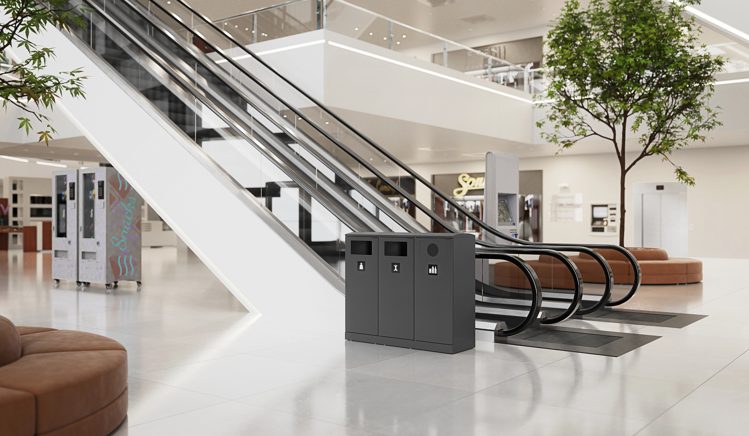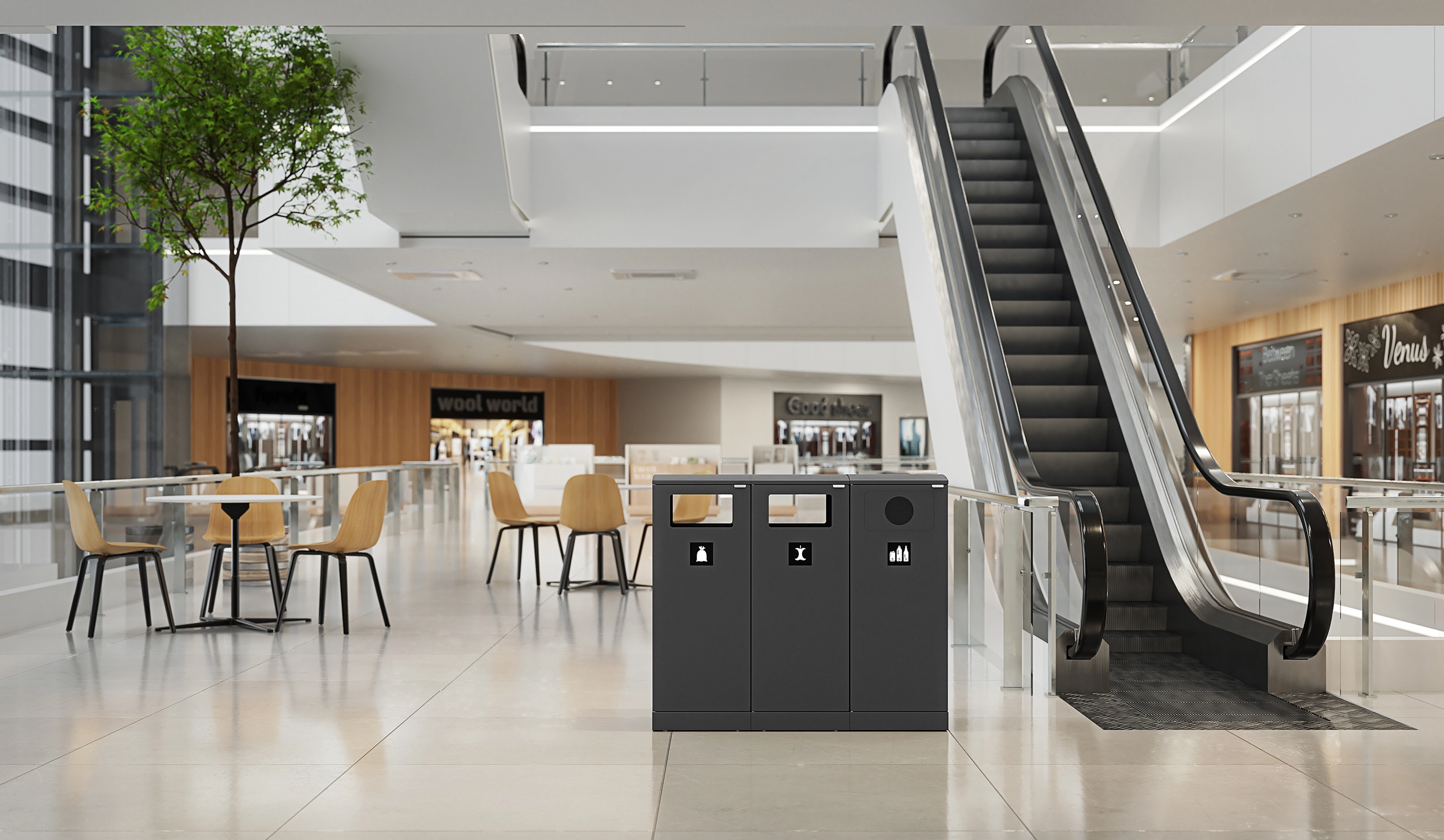 Åbningen på indkastet er udstyret med en måtte med en stjerneformet snit. Dette synlige snit i indkastet sammenholdt med et synligt piktogram er med til at sikre mere korrekt sortering af pantemballage. Den integrerede indsats i affaldsbeholderen vippes ud, når beholderen skal tømmes. Den stærke poseholder er designet kvadratisk og sikrer, at posen bliver siddende. I bunden er en stor drypbakke monteret, som samler det overskydende væske, som kan opstå ved sortering. Drypbakken kan tages ud og rengøres. Affaldsbeholderen kan kobles sammen tilsvarende beholdere ved hjælp af skruer gennem de fire klargjorte huller på siden.