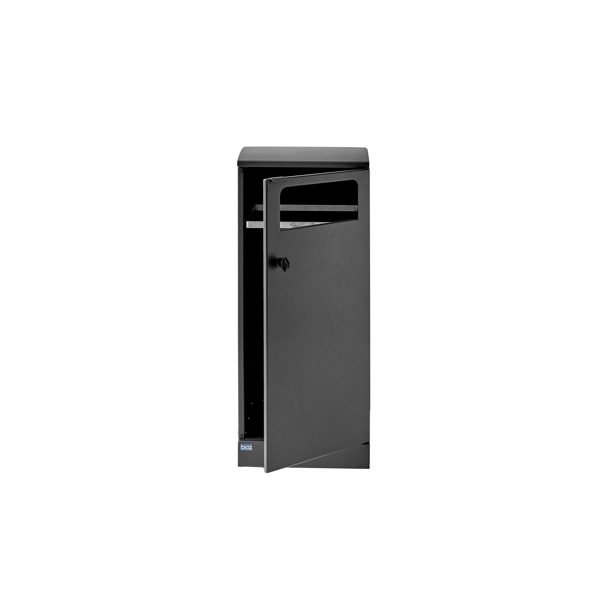 Fleksibel affaldsbeholder fra Bica sikrer nem og brugervenlig affaldssortering udendørs. Affaldsbeholderen er designet med et enkelt indkast, hvor der kan monteres en metalklap, så fugle ikke går i affaldet. Affaldsbeholderen leveres med integreret poseholder, som kan trækkes ud, når posen skal skiftes. Affaldsbeholderen har dertil frontdør for nem tømning, der åbnes med nøgle. Bica Model 711 kan kombineres med andre Bica modeller i samme dybde.