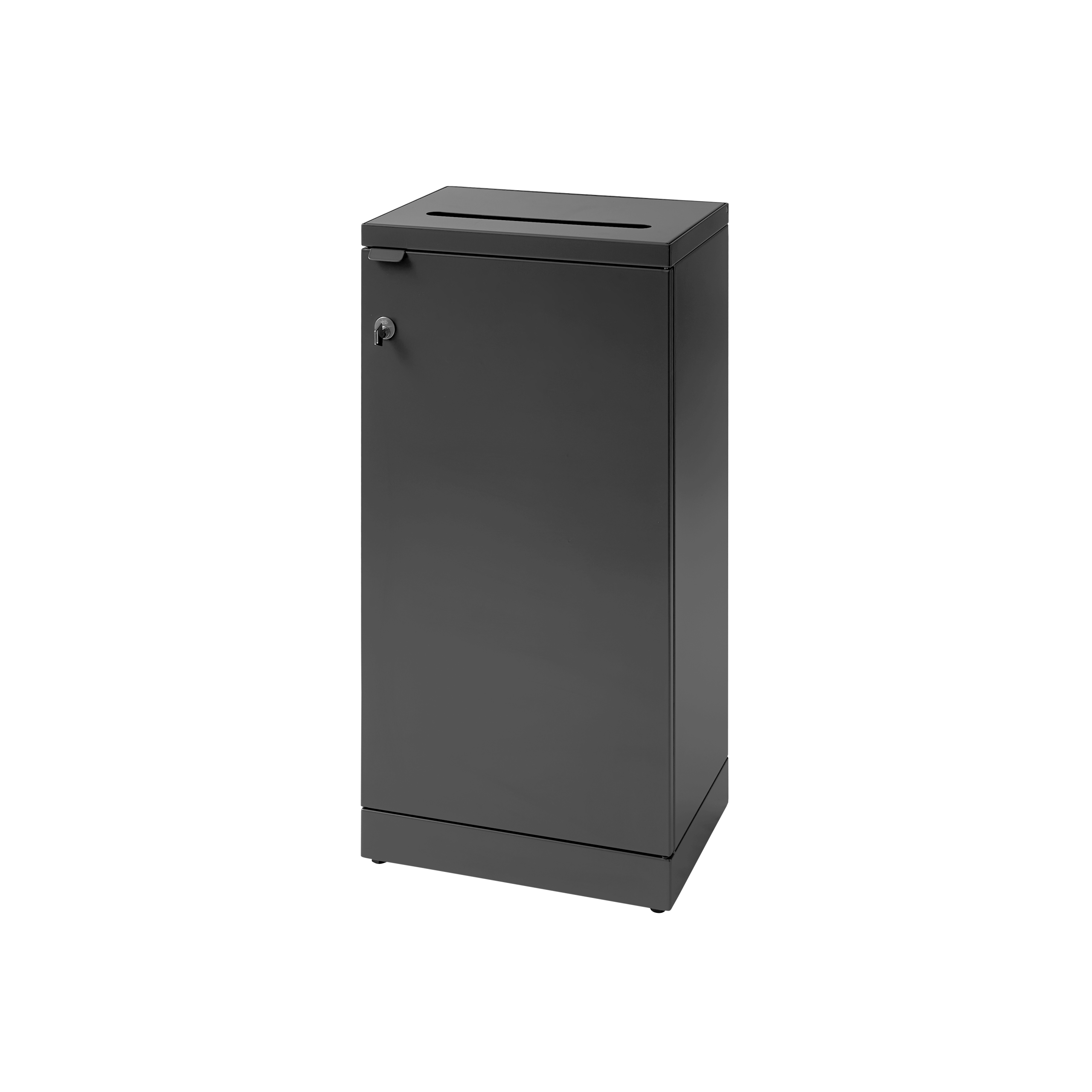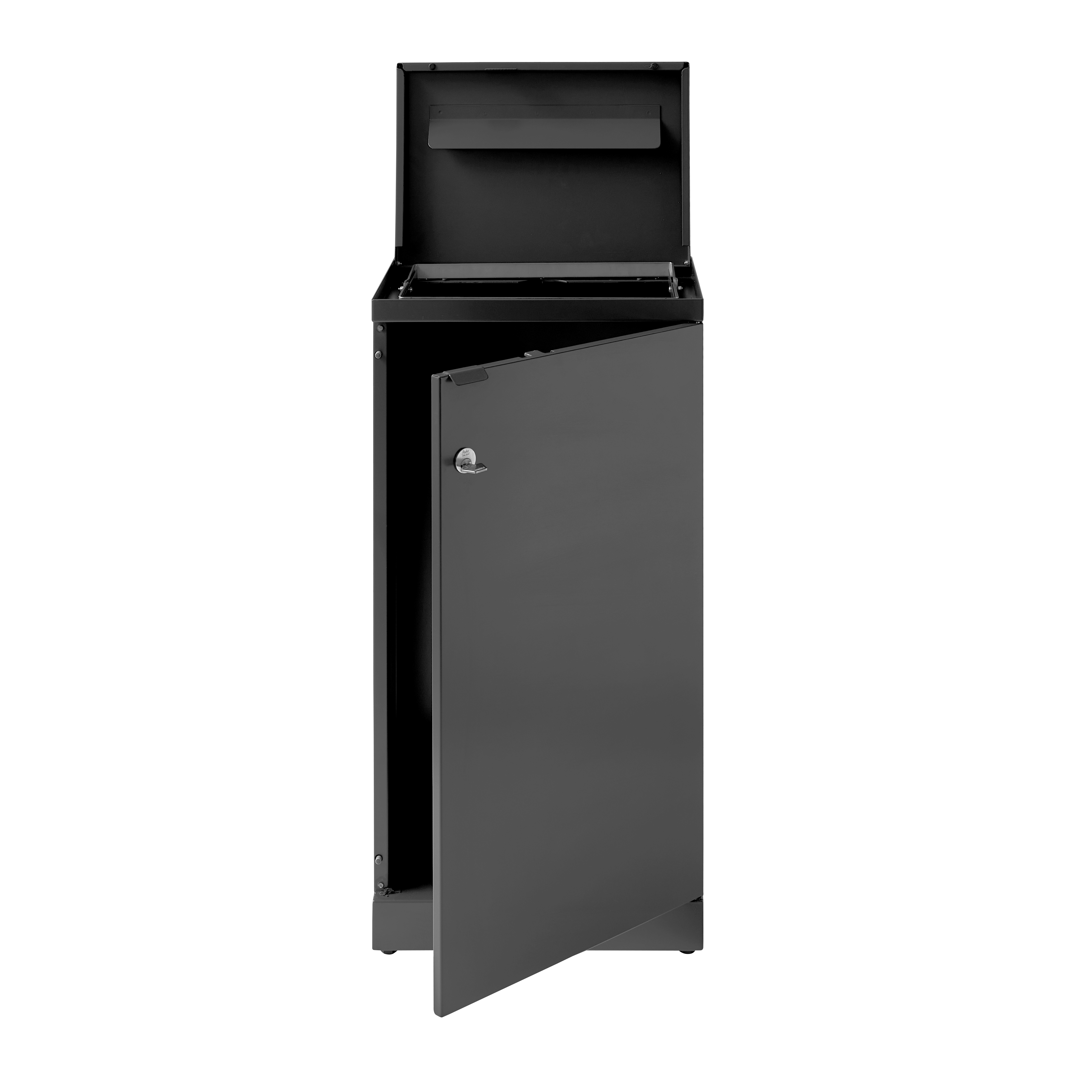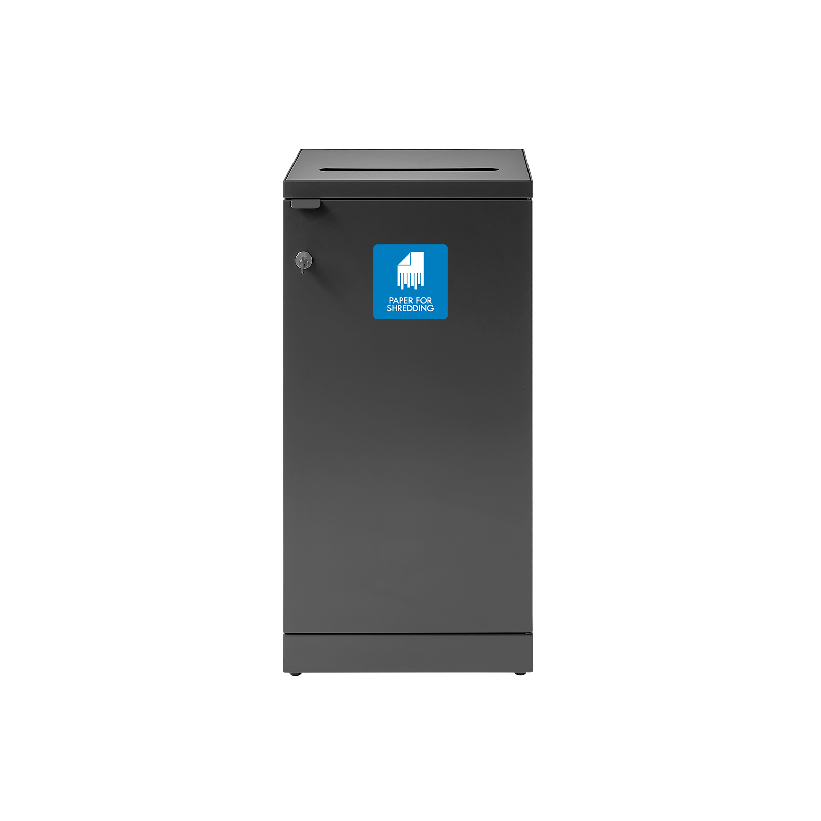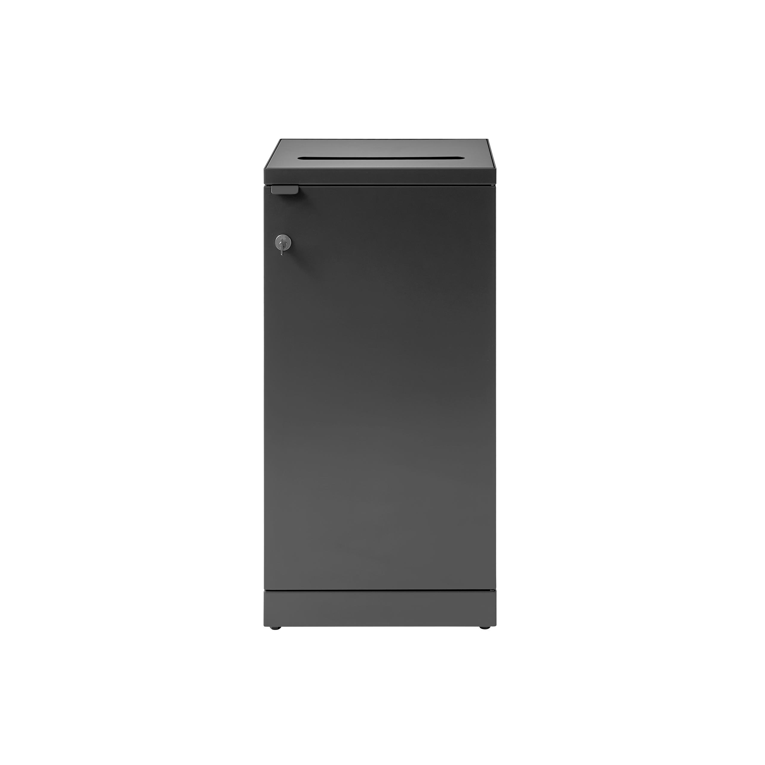 Fleksibel affaldsbeholder fra Bica sikrer nem og brugervenlig affaldssortering på arbejdspladsen. Affaldsbeholderen er designet med et aflangt og smalt indkast velegnet til fortroligt papir. Den er udstyret med rukolås, så papiret opbevares sikkert.