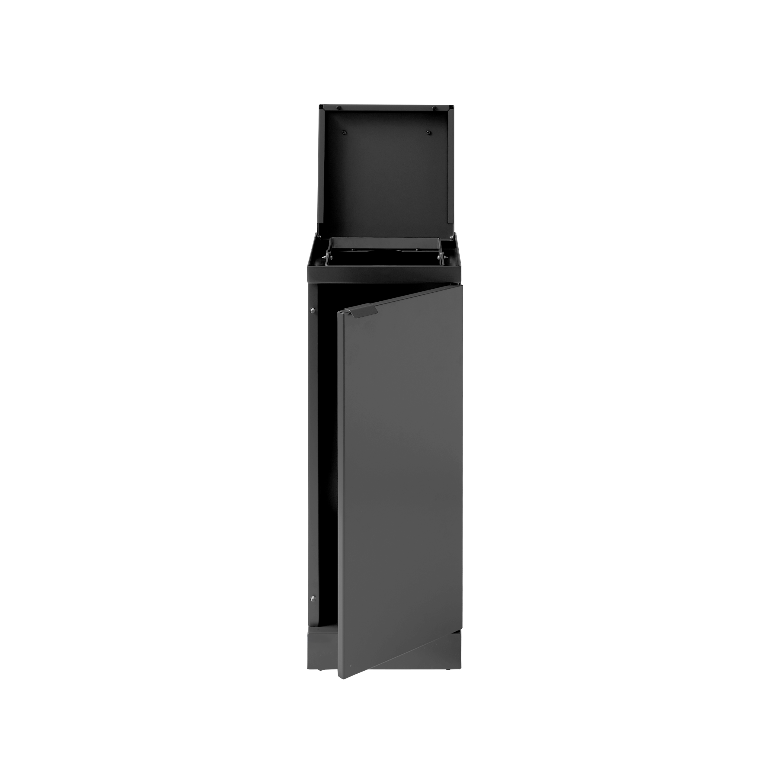 Affaldsbeholderen er udstyret med frontdør med soft close for ergonomisk korrekt tømning uden tunge løft. Affaldsbeholderen er udstyret med en integreret og stærk poseholder, så posen bliver siddende. Låget skjuler samtidig posen, så affaldsbeholderen bevarer et stilrent design. Affaldsbeholderen er udstyret med justerbare fødder, som er skjult bag soklen.