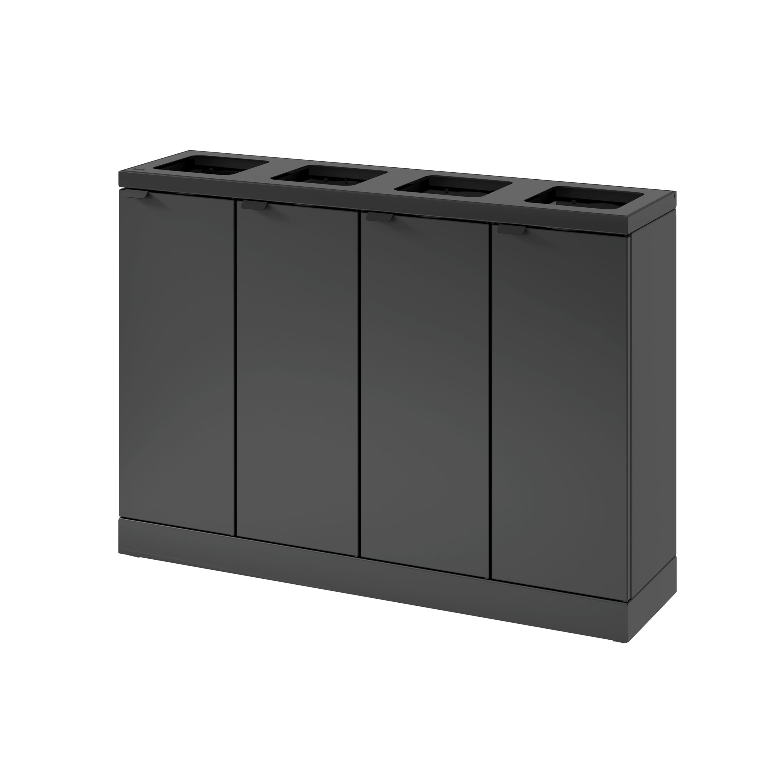 Fleksibelt affaldssystem fra Bica sikrer nem og brugervenlig affaldssortering på arbejdspladsen. Affaldssystemet er designet med 4 fraktioner med åbne indkast for nem sortering.