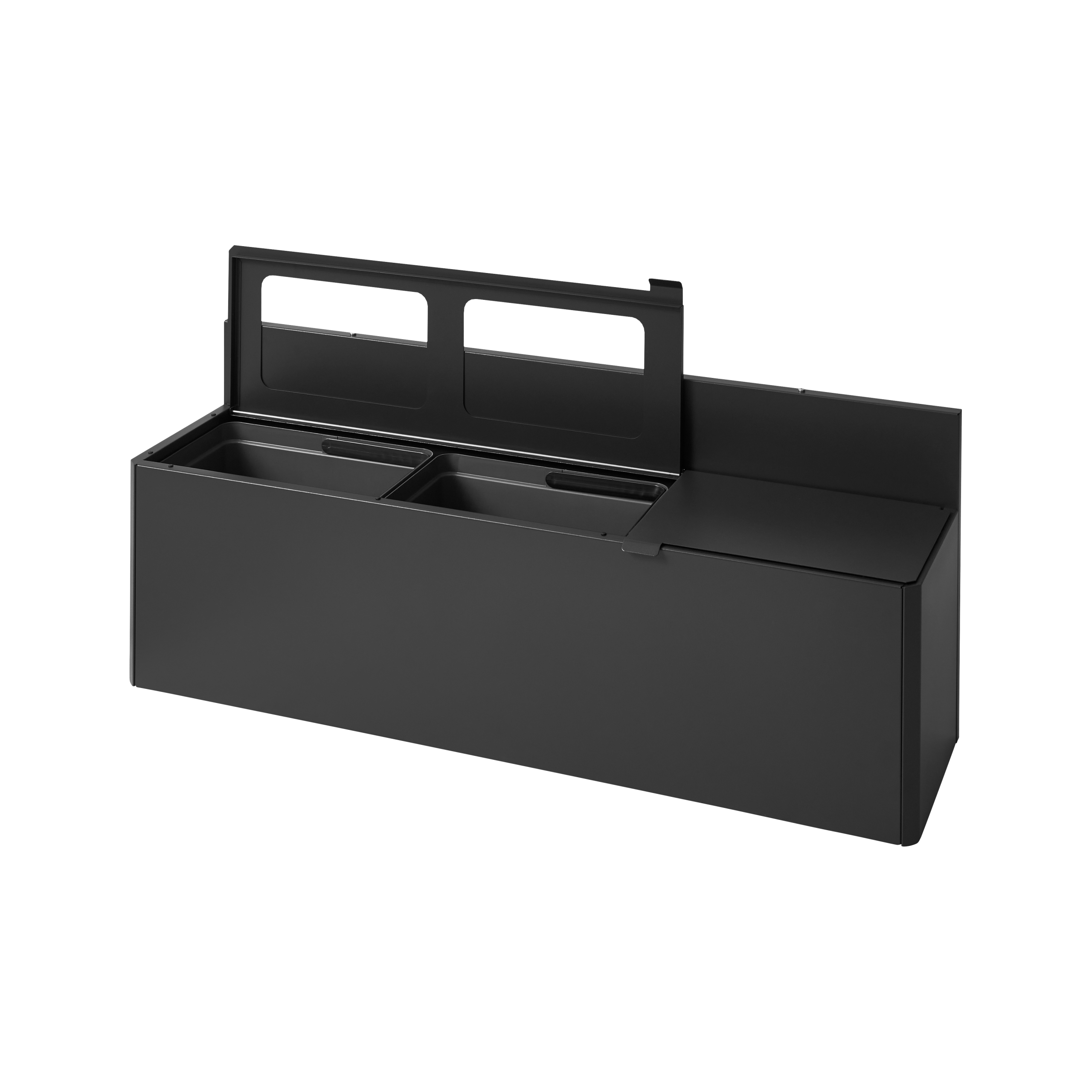 Affaldssystemet fastgøres nemt på væggen ved hjælp af den skjulte vægskinne bagpå. Denne affaldsstation er udstyret med høj plade bagpå for at beskytte væggen mod smuds, som nemt kan tørres af. Affaldssystemet leveres med løftelåg og inderbeholdere med håndtag for nem håndtering ved tømning. Skruer mv. til montering medfølger ikke.