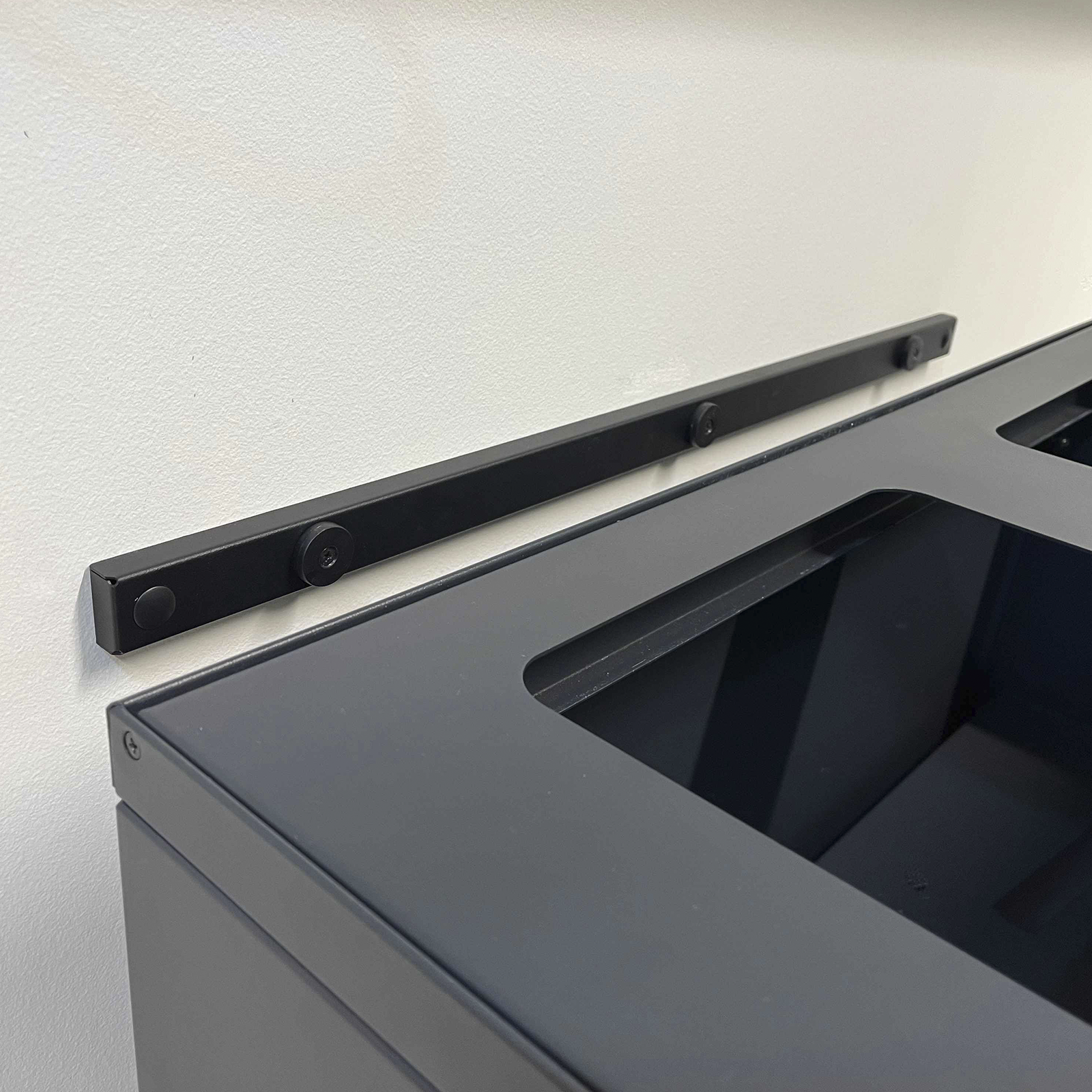 Affaldssystemet er udstyret med frontdøre med soft close for ergonomisk korrekt tømning uden tunge løft. Affaldssystemet er udstyret med integrerede og stærke poseholdere, så posen bliver siddende. Låget skjuler samtidig poserne, så affaldssystemet bevarer et stilrent design. Affaldssystemet er flytbart takket være de monterede hjul, som er skjult bag soklen. Affaldsløsningen leveres med et magnetisk vægbeslag, som den skal fikseres til.