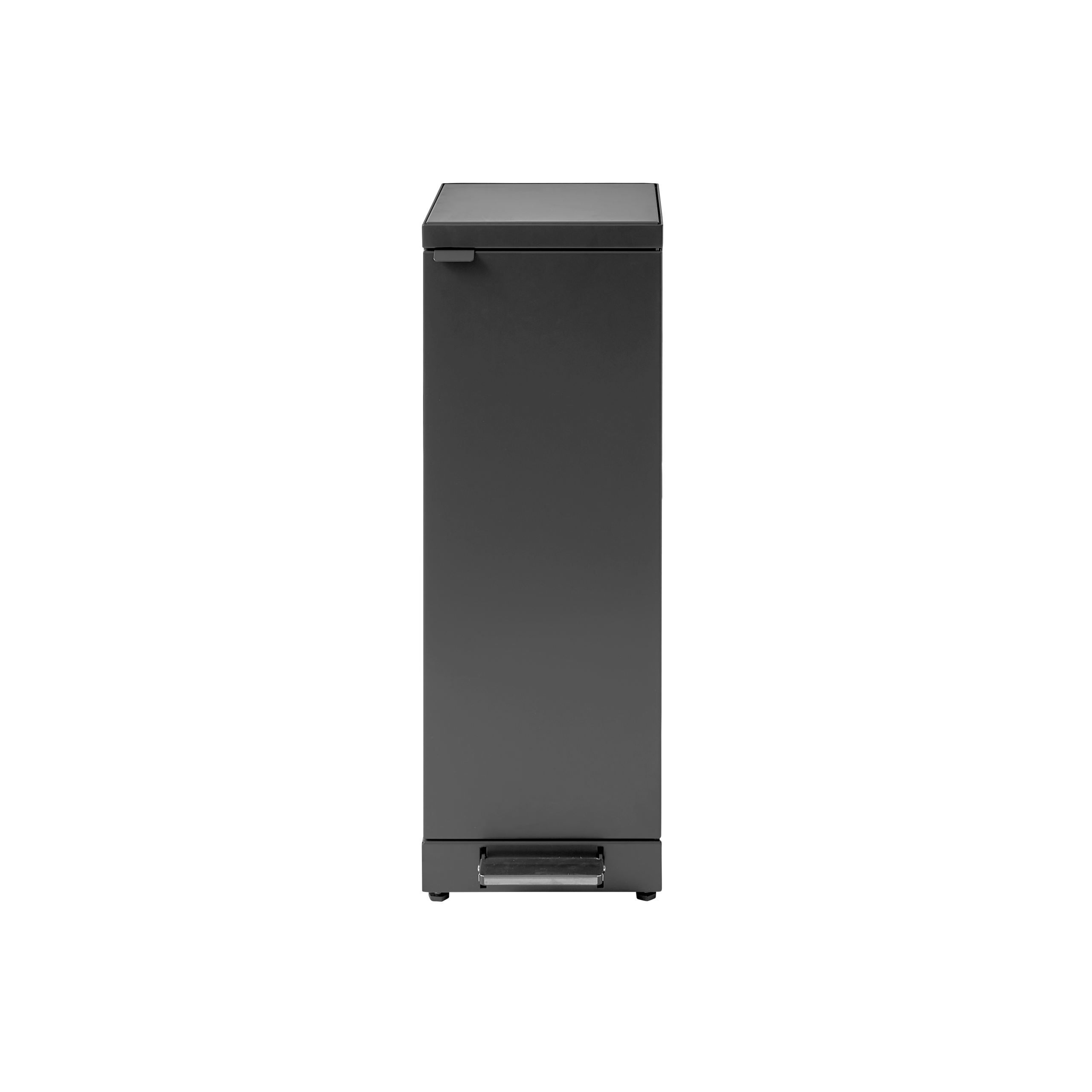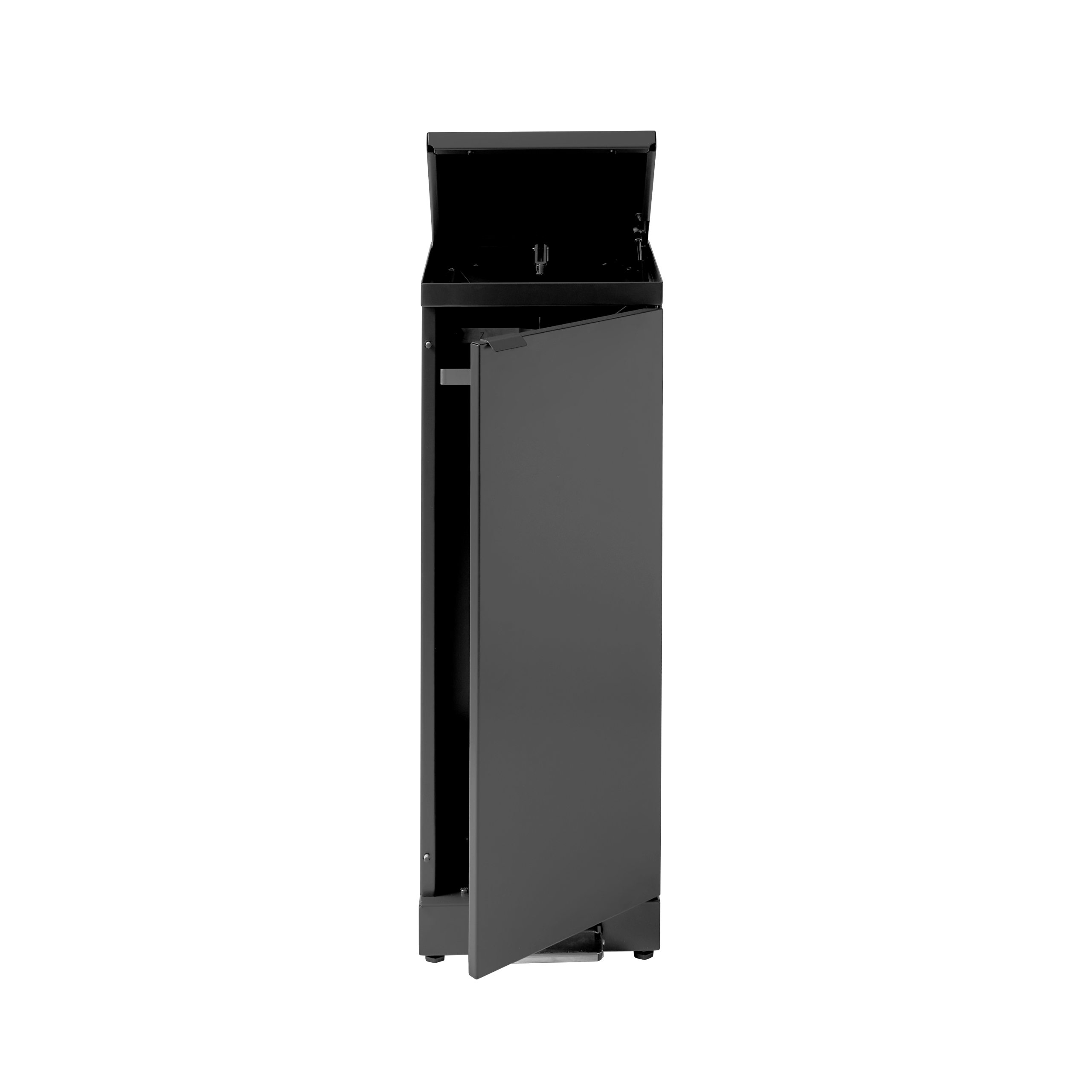 Denne pedalspand er udstyret med frontdør med soft close for ergonomisk korrekt tømning uden tunge løft. Affaldsbeholderen er udstyret med en integreret og stærk poseholder, så posen bliver siddende. Der er monteret gasdæmper i låget for lydløs og rolig lukning, og låget skjuler samtidig poserne, så affaldsbeholderen bevarer et stilrent design. Affaldsbeholderen er udstyret med justerbare fødder, som er skjult bag soklen.