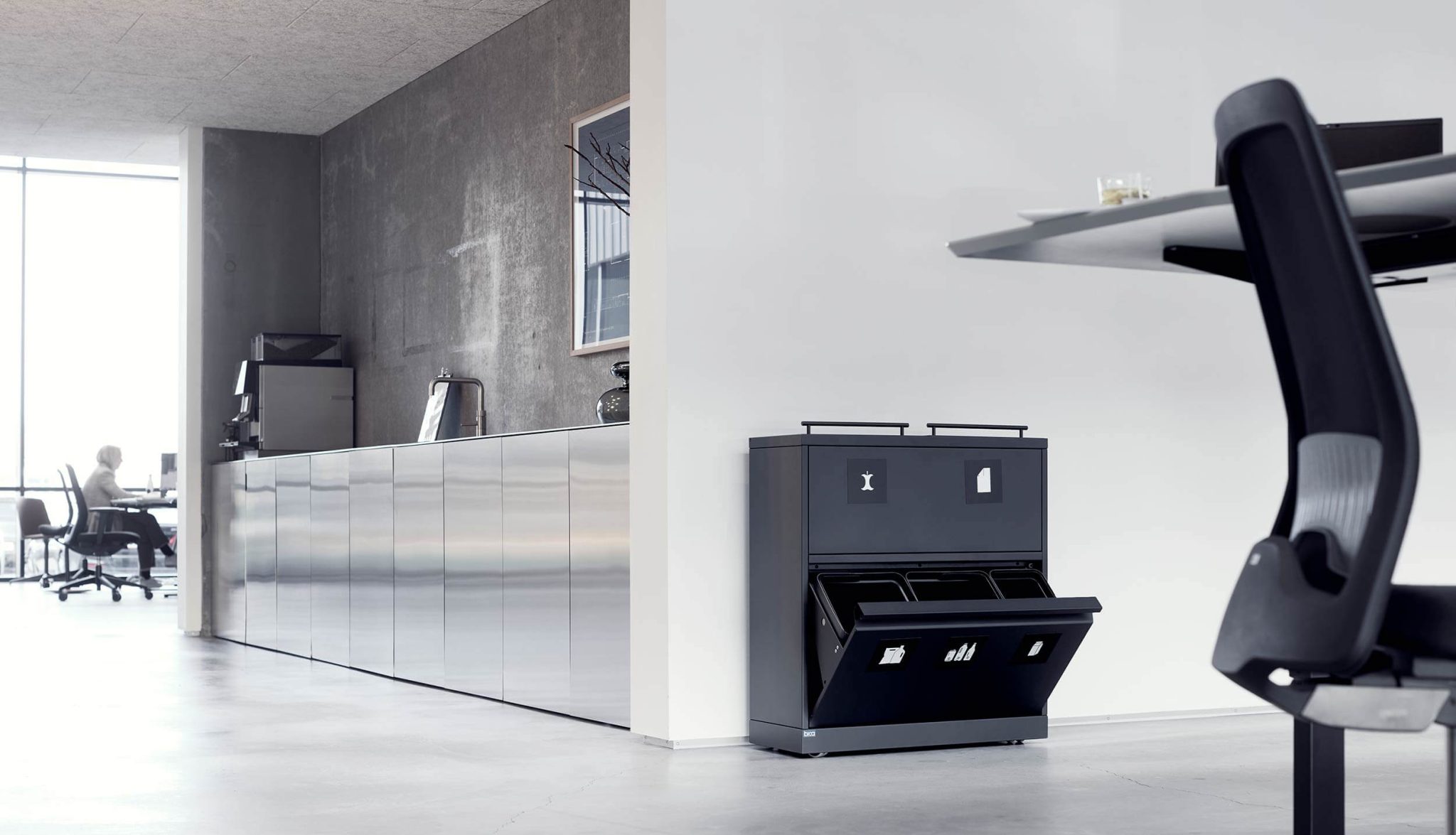 Vores indendørs affaldsløsninger er EU Ecolabel og fremstillet i stål, hvilket sikrer lang levetid og nem vedligeholdelse. Og skulle jeres behov ændre sig, kan du nemt udvide systemet med flere beholdere – en løsning, der vokser med dig og dit ansvar for miljøet.