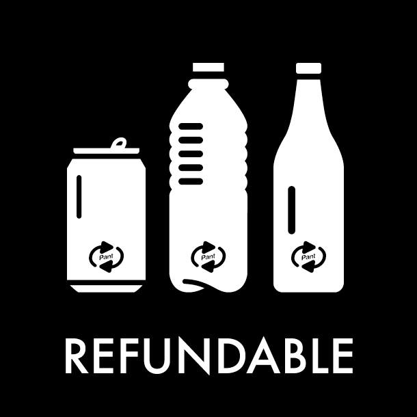 Piktogram Refundable 12×12 cm Magnetisk Sort