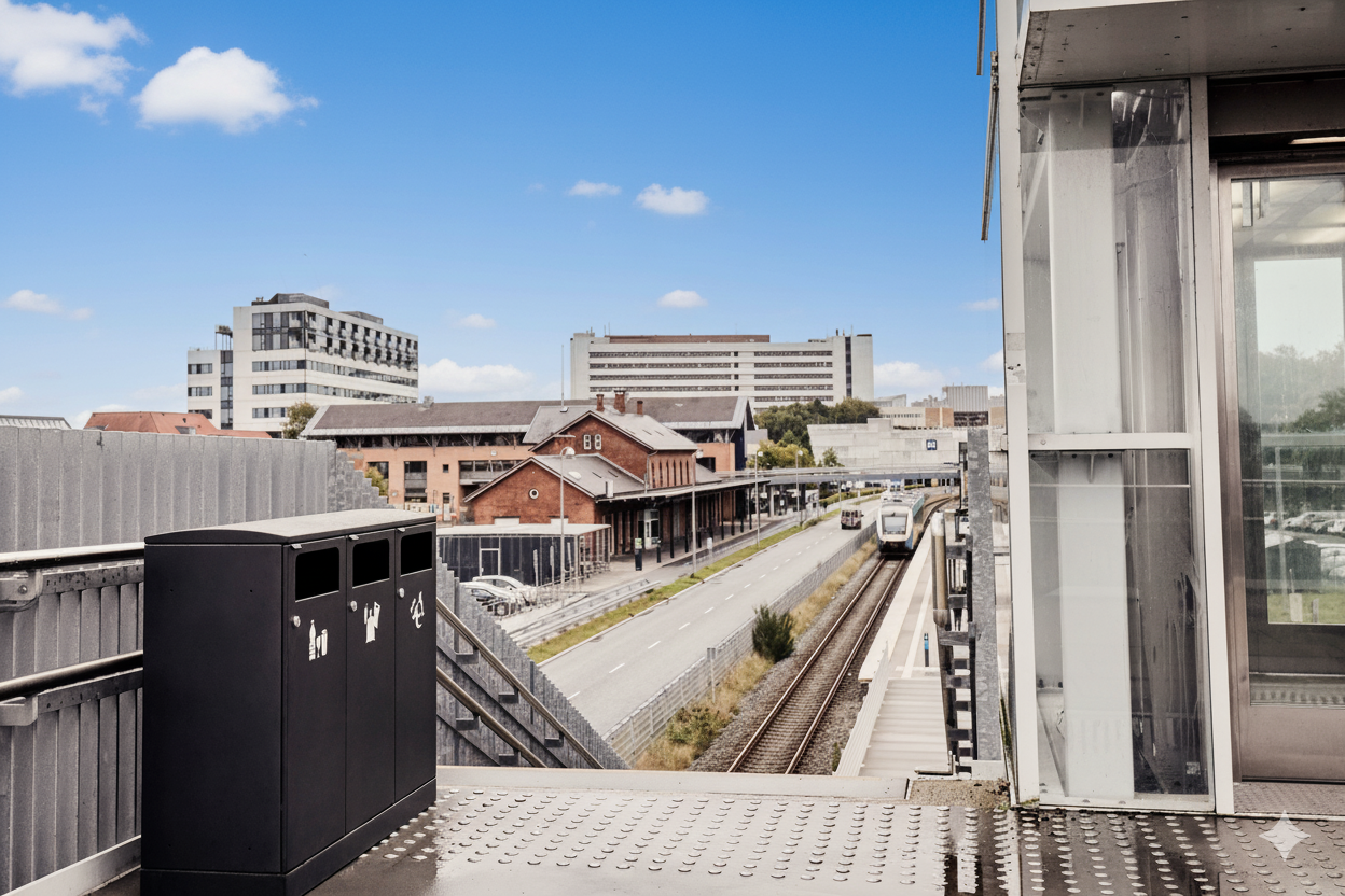 Affaldssystemet er udstyret med frontdøre for ergonomisk korrekt tømning uden tunge løft. Affaldssystemet er udstyret med en integreret og stærk poseholder, så posen bliver siddende. Den lukkede top skjuler samtidig posen, så affaldssystemet bevarer et stilrent design. Den er forberedt til fastgørelse i underlaget, så den ikke kan flyttes med og kan samtidig aflåses.