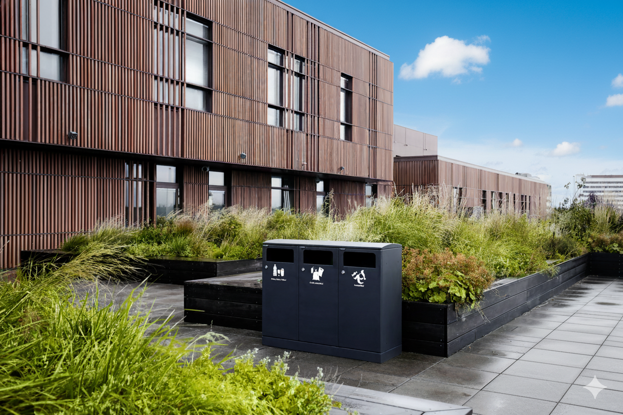 Fleksibelt affaldssystem fra Bica sikrer nem og brugervenlig affaldssortering udendørs. Affaldssystemet er designet med 3 fraktioner med indkast fra siden for nem affaldssortering. Der er mulighed for at montere en metalklap, så fugle ikke går i affaldet. Affaldssystemet leveres med integrerede poseholdere, som kan trækkes ud, når posen skal skiftes. Affaldssystemet har dertil frontdøre for nem tømning, der åbnes med nøgle. Bica Model 713 kan kombineres med andre Bica modeller i samme dybde.