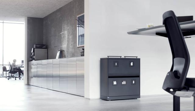 De meste brugte sorteringer i et kontormiljø eller mindre tekøkkener er madaffald, plast, papir og restaffald.